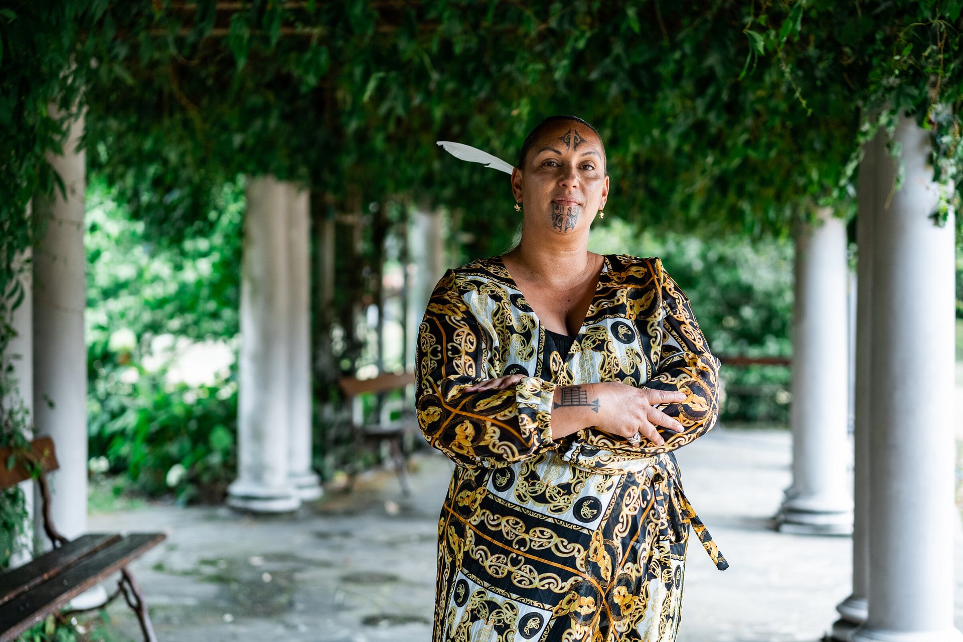 Her whakapapa or lineage to Te Ao Māori allows for her to weave through the realms of Te Wa|Atea - time and space, the realm of the quantum field, the realms of the past, present and future.